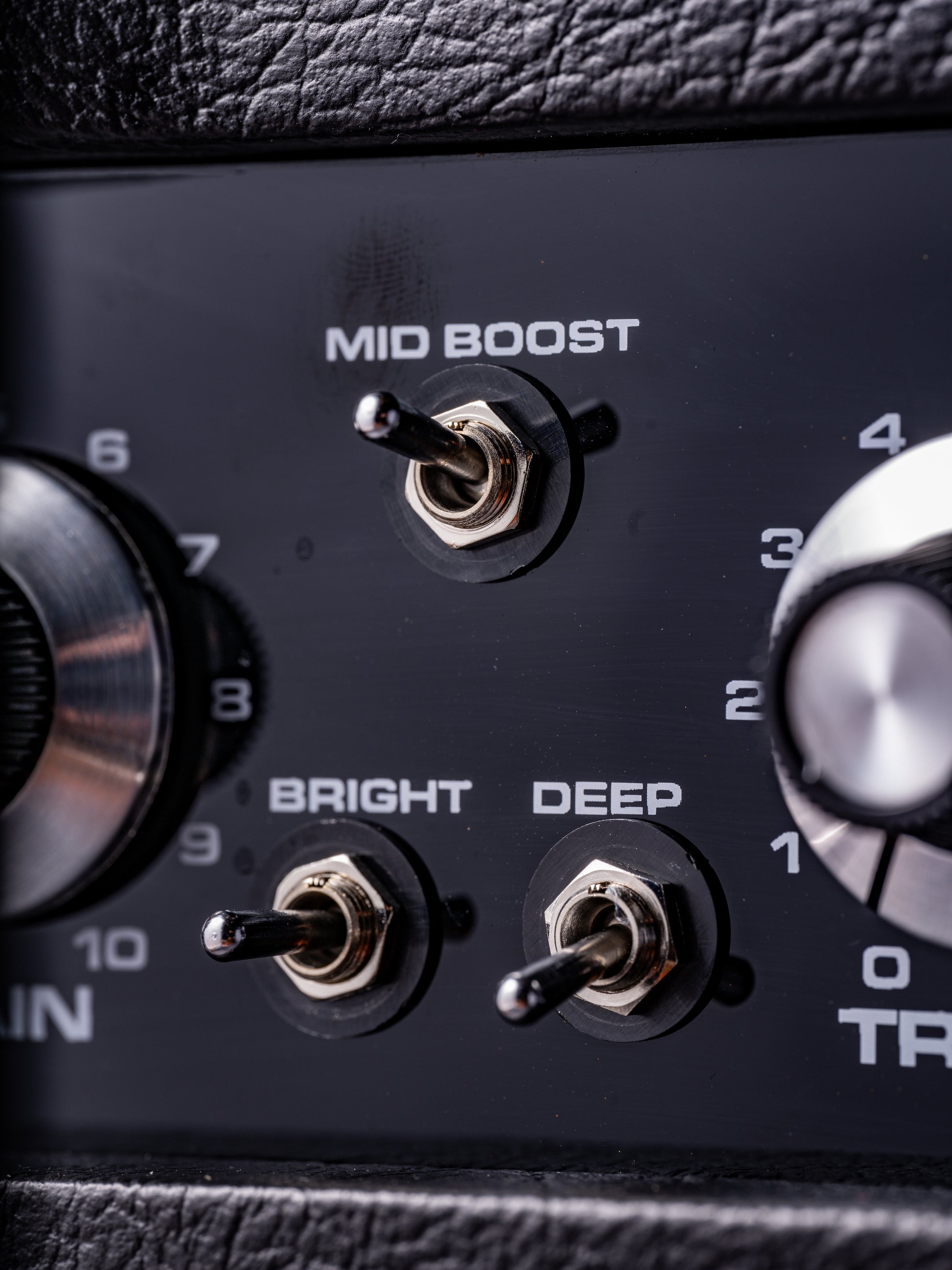 5) DEEP two-way toggle switch 6) TREBLE control
